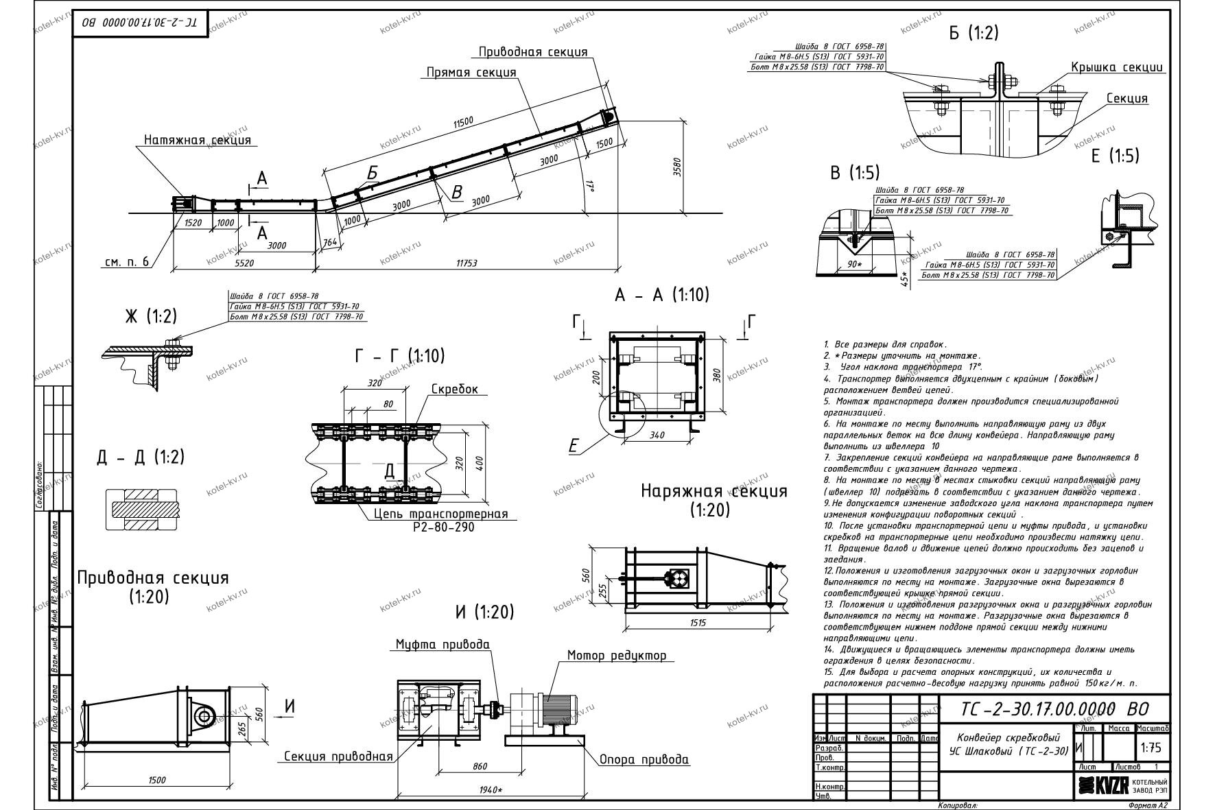 Скребковый транспортер ТС 2-30 с чугунной цепью Р-2-80 применяется для транспортирования угля, топлива, золы, шлака и прочих сыпучих материалов. Устанавливается в промышленных отопительных и блочно модульных котельных с котлами с механическими топками. Котельный завод осуществляет производство транспортеров ТС 2-30 различной длины и конфигурации в зависимости от планировки котельной.
